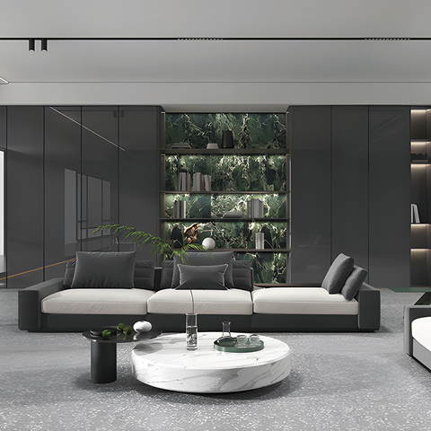 रसोई और अपार्टमेंट के लिए उच्च गुणवत्ता 1220 मिमी x 2440 मिमी हाई-ग्लॉस यूव ग्रे मेल्माइन एमडीएफ घनत्व बोर्ड